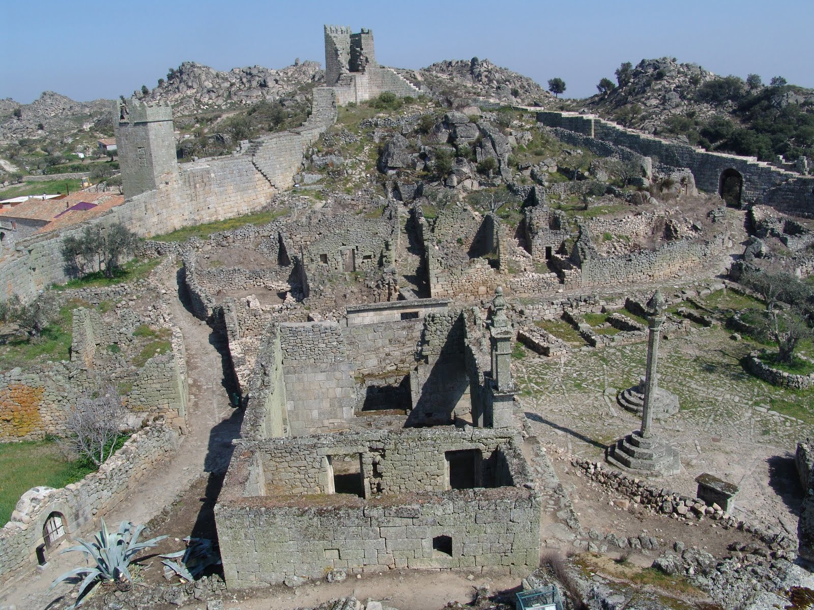 O castelo de Marialva era, de facto, uma vila fortificada inteira, ou quase. No interior das suas muralhas havia uma casa da câmara, um pelourinho, uma cadeia, igrejas, um cemitério e tudo o mais que se requeria numa comunidade urbana em Portugal, na Idade Média. As ruínas de todos estes antigos equipamentos sociais, além das de diversas ruas e habitações, podem hoje admirar-se no desabitado interior do castelo. Os moradores atuais de Marialva vivem fora das muralhas e não dentro.