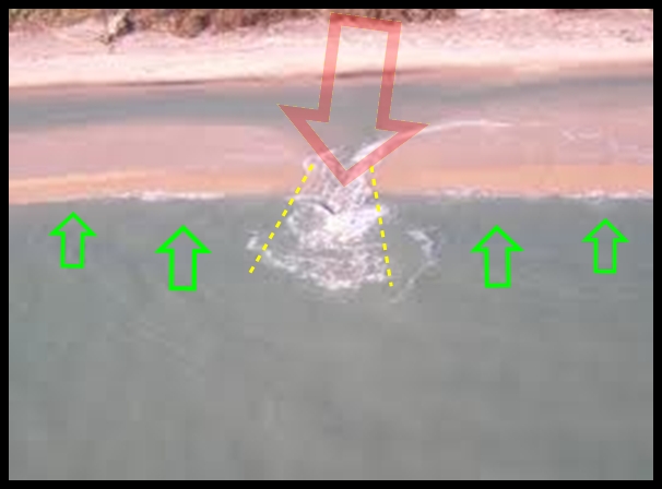 O mar quando chega à praia na forma de onda, espalha-se em toda a sua linha longitudinal, sendo que quando a onda regressa ao oceano não o faz da mesma forma, mas sim concentra-se toda numa determinada área como se fosse uma chaminé que regressa mar dentro apenas numa determinada zona.