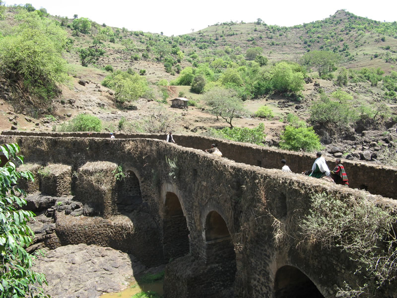 Segunda ponte portuguesa sobre o Rio Nilo Azul, também do séc. XVI. Esta ponte foi destruída em 1945, numa tentativa para travar o avanço das tropas italianas enviadas por Mussolini para conquistar a Etiópia (Foto: Krfrantz)