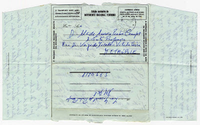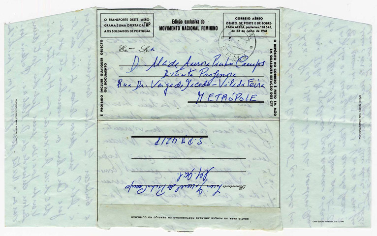 | Um aerograma do tipo usado na correspondência entre os militares portugueses destacados em África e as suas famílias (Foto: Museu do Papel) |