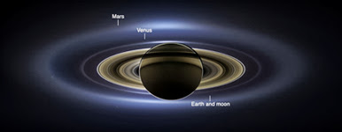 A imagem que acima se vê é uma fotografia (melhor dizendo, é um mosaico de fotografias) do planeta Saturno, exibindo os seus espetaculares anéis. Ela foi feita a um milhão e duzentos mil quilómetros de distância da Terra, em 19 de julho de 2013, pela sonda espacial Cassini. Mas não é só Saturno que se vê nela. Vê-se o próprio planeta Terra, como um ponto azul situado em baixo e à direita de Saturno. Também se veem os planetas Vénus e Marte, acima e à esquerda, assim como sete satélites de Saturno e diversas estrelas.