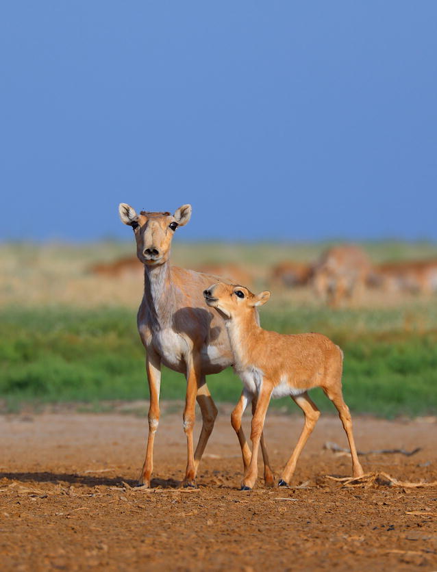 | Segundo prémio. Dois antílopes saiga recém-nascidos. O antílope saiga é uma espécie criticamente ameaçada, que vive na estepe Caspiana, uma das regiões mais danificadas e frágeis do planeta. O mar Cáspio é rodeado pelo Cazaquistão, Rússia, Azerbaijão, Irão e Turquemenistão. (Foto: Andrey Giljov, Universidade Estatal de Sampetersburgo, Rússia) |