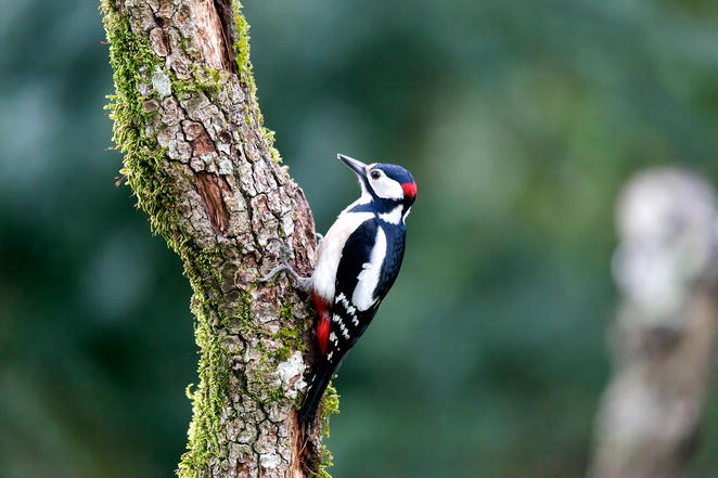 | Tronco de carvalho-português, carvalho-cerquinho ou cerquinho, coberto de musgo e com um picapau pousado. Fotografado em Ourém, Portugal. (Foto: César Garcia, Universidade de Lisboa, Portugal) |
