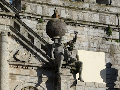 É verdade, prezado Rogério. Estes "meninos" escapam a quem passa, mas são muito interessantes, apesar de bastante desgastados pela passagem dos séculos. São figuras de certo modo pagãs, que apesar disso têm proeminência na fachada de uma igreja. Em vez de estátuas de santos ou de anjos, como seria de esperar, aparecem aqueles homenzarrões lá no alto! É claro que uma tal "ofensa" à Santa Madre Igreja só podia ter acontecido antes do aparecimento do Tribunal do Santo Ofício em Portugal. Talvez se pudesse esperar, até, que a Inquisição, que esteve muito ativa em Évora, tivesse mandado destruir tão grande "sacrilégio", mas isso não aconteceu e os "meninos" lá continuam.